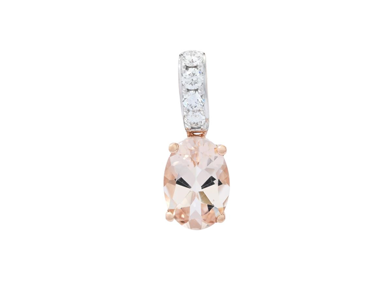 HÄNGE, 18K roséguld, morganit, ca 0,66 ct, 4 briljantslipade diamanter ca 0,07 ctv, höjd ca 1,3 cm, vikt 0,5 g.