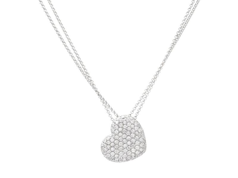 COLLIER, 14K vitguld, hjärta, 95 briljantslipade diamanter ca 0,95 ctv, ca TW-W/SI-P, längd 42 cm, vikt 5,1 g.