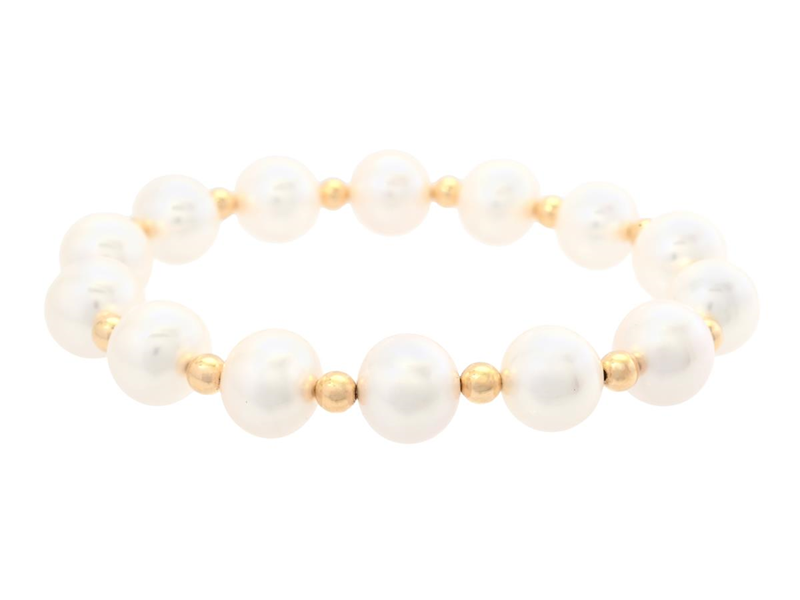 PÄRLARMBAND, odlade sötvattenspärlor ca 10,0 -11,0 mm, kulor i 18K guld, trädd på elastisk tråd, längd ca 18 cm.