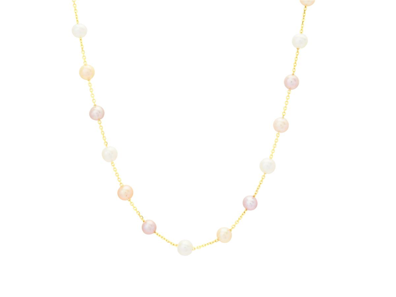 COLLIER, 18K guld, odlade sötvattenspärlor ca 3,0 - 4,0 mm, vit, aprikos och lila ton, längd 45/50 cm, vikt 4,4 g.