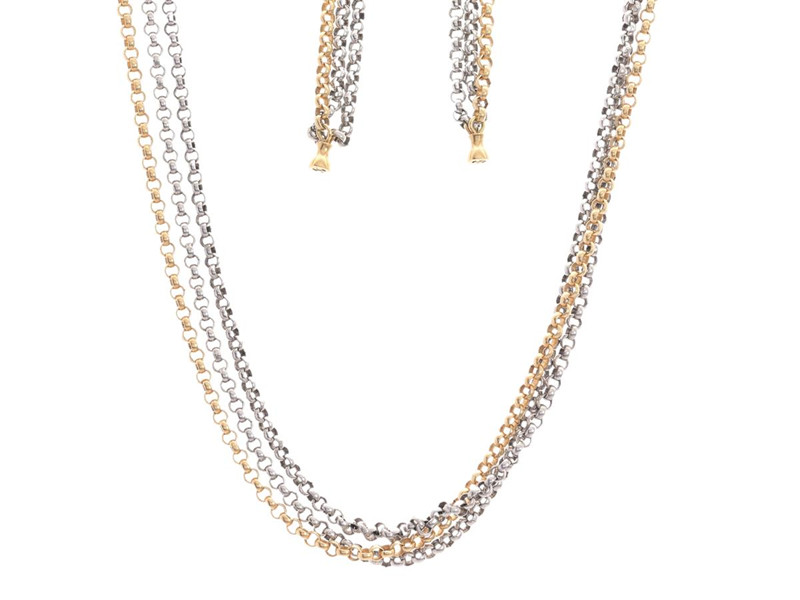 OLE LYNGGAARD, kedja, 3 - radig, 18K guld/oxiderat silver, dobbar, ej lås, längd 41 cm, vikt 20 g,
