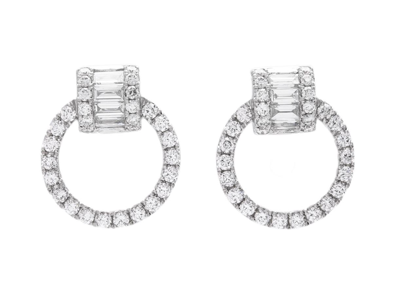 ÖRHÄNGEN, 18K vitguld, 8 baguetteslipade diamanter 0,23 ctv, 60 briljantslipade diamanter 0,39 ctv, ca TW/VS, stift, höjd 13,0 mm, bredd 11,0 mm, vikt 2,9 g.