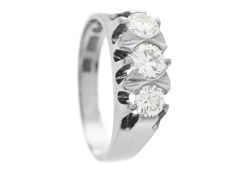 TRESTENSRING, 18K vitguld, briljantslipade diamanter 0,71 ctv enligt gravyr, ca TW-TCr/VS-SI, stl 16,75 mm, vikt 5,5 g, ett par diamanter med nagg.