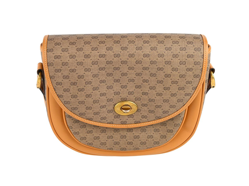 VÄSKA, GUCCI, Vintage Flap Crossbody, brunt, Microguccissima Coated Canvas, orange läder, 21x16x6 cm