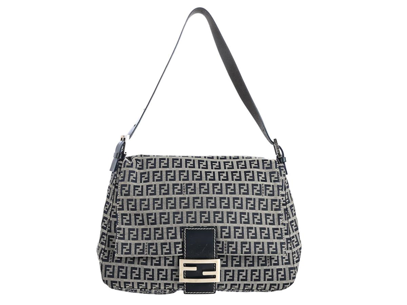 VÄSKA, FENDI, Mama Forever, grå, blå Zucchino Canvas, blått läder, silverfärgade beslag, 28x19x11 cm.