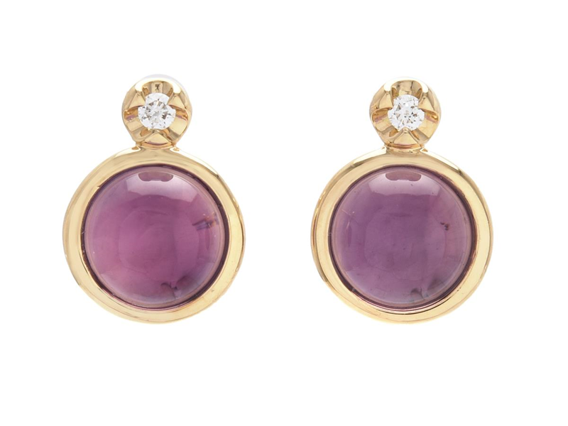 ÖRHÄNGEN, 18K guld, cabuchonslipade ametister 1,86 ctv, 2 briljantslipade diamanter 0,03 ctv, ca W/VS, stift, längd 10,0 mm, vikt 2,6 g.