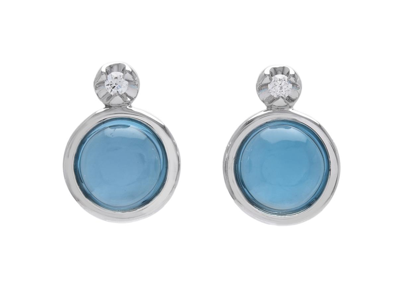 ÖRHÄNGEN, 18K vitguld, cabuchonslipade blå topaser 2,64 ctv, 2 briljantslipade diamanter 0,03 ctv, ca W/VS, stift, längd 10,0 mm, vikt 2,6 g.
