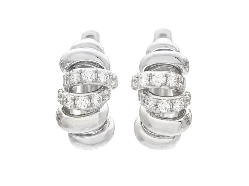 ÖRHÄNGEN, 18K vitguld, 20 briljantslipade diamanter 0,22 ctv, ca TW-W/VS-SI, stift, höjd 13,0 mm, bredd 6,5 mm, vikt 4,3 g.