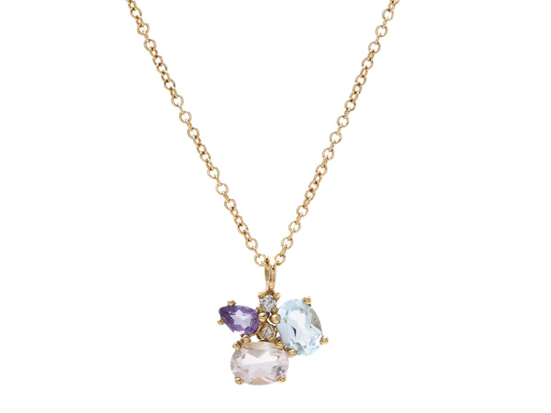 COLLIER, 18K guld, topas, ametist, rosenkvarts, 2 briljantslipade diamanter ca 0,014 ctv, ca W/SI, längd 40/42/45 cm, vikt 1,8 g.