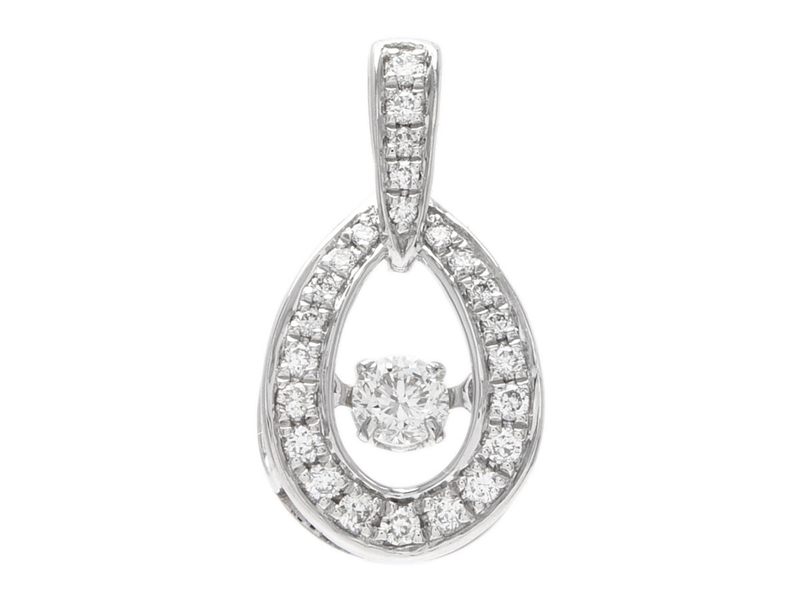 HÄNGE, 18K vitguld, briljantslipad diamant 0,09 ct, rörlig fattning, 24 briljantslipade diamanter 0,10 ctv, ca TW-W/VS, höjd 15,0 mm ink stel ögla, vikt 0,9 g.