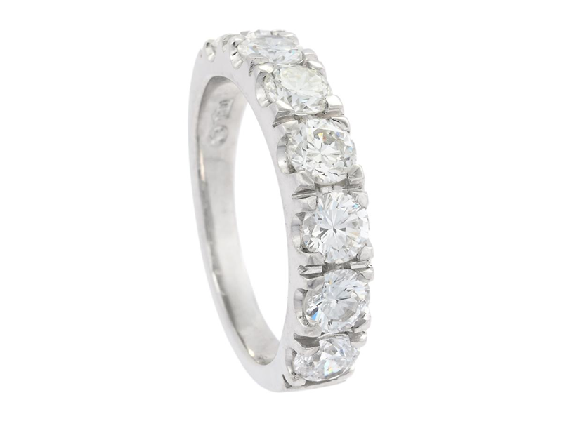 ALLIANSRING, 18K vitguld, 7 briljantslipade diamanter ca 1,76 ctv, ca TW-TCr/VS-P, stl 16,75 mm, vikt 4,9 g, en diamant med nagg på kronan, Ett par diamanter med nagg på kuletterna.