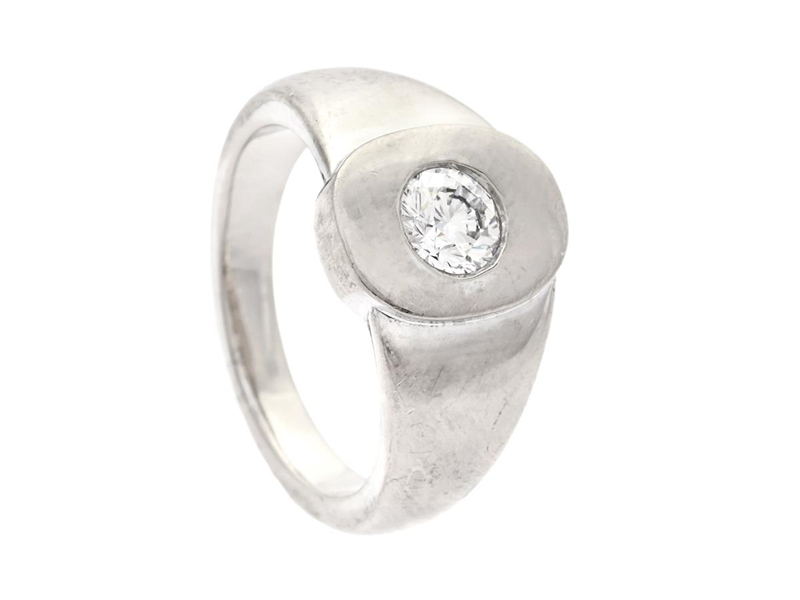 RING, 18K vitguld, briljantslipad diamant 0,50 ct enligt gravyr, ca TW(F)/VS1, Stockholm 1999, stl 17,25 mm, vikt 11,6 g.