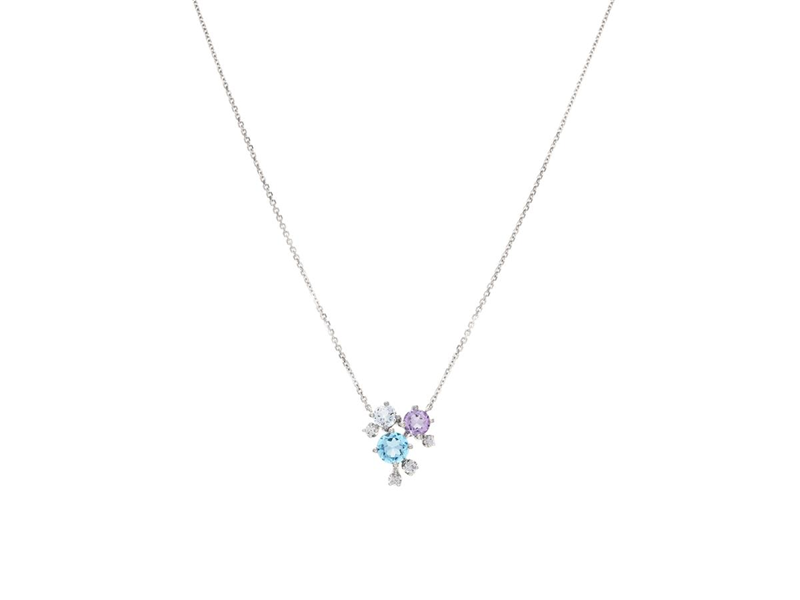 COLLIER, 18K vitguld, 2 runda fasettslipade blå topaser 0,49 ctv, ametist 0,17 ctv, 4 briljantslipade diamanter 0,04 ctv, ca W/VS-SI, längd 40/42 cm, vikt 1,9 g.