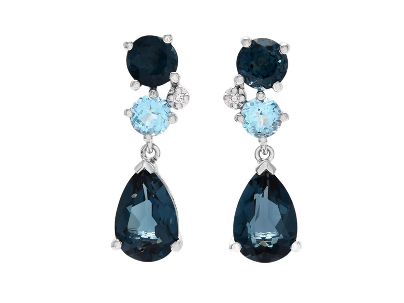 ÖRHÄNGEN, 18K vitguld, droppformade och runda fasettslipade blå topaser 5,75 ctv, 2 briljantslipade diamanter 0,01 ctv, ca W/VS, stift, längd 22,0 mm, vikt 4,3 g.
