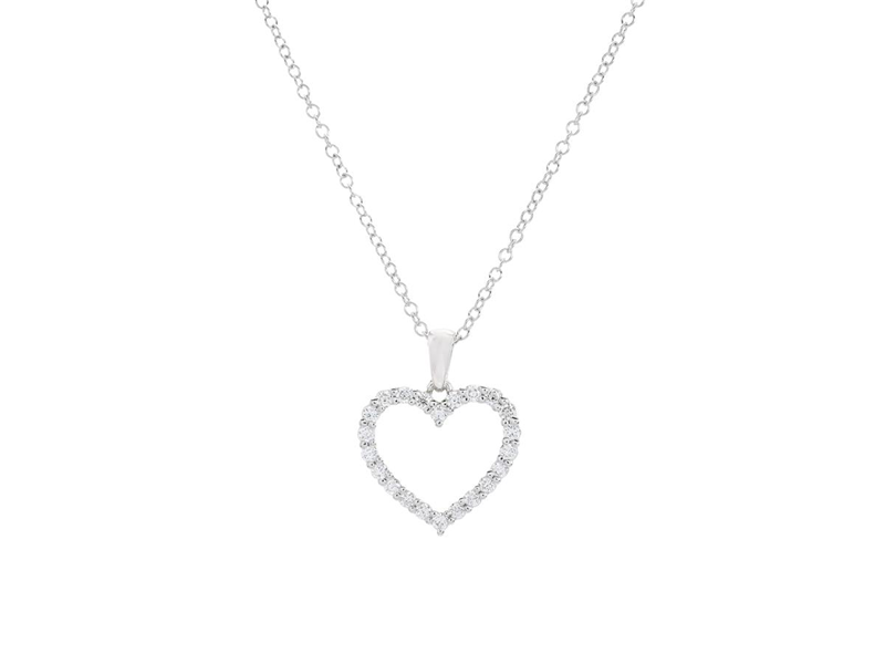 HÄNGE MED KEDJA, platina, hjärta, 22 briljantslipade diamanter 0,24 ctv, ca TW/VS, höjd 12,0 mm, bredd 13,0 mm, kedja 42/45 cm, vikt 3,9 g.