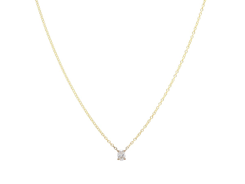 ENSTENSCOLLIER, 18K guld, oval briljantslipad diamant 0,31 ct, TW(G)/VS1, GIA Diamond Dossier 2537528549, längd 42/45 cm, vikt 2,1 g.