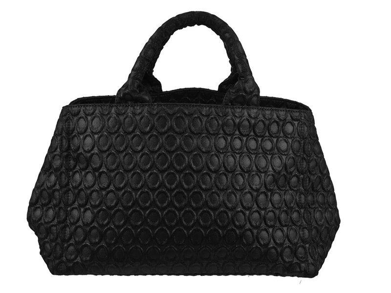VÄSKA, PRADA, Medium Canapa Tote, svart Circle Pattern Canapa Canvas, guldfärgade beslag, 34x23x22 cm