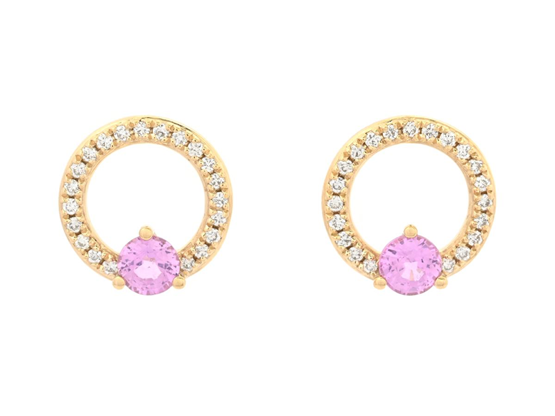 ÖRHÄNGEN, 18K guld, runda fasettslipade rosa safirer 0,34 ctv, 42 briljantslipade diamanter 0,11 ctv, ca TW-W/VS-SI, stift, höjd 9,0 mm, vikt 1,7 g.