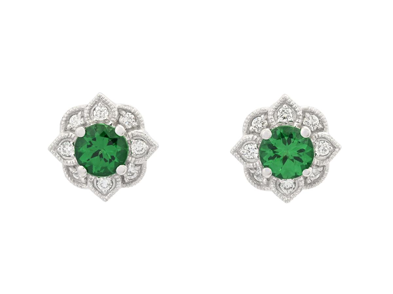 ÖRHÄNGEN, 18K vitguld, runda fasettslipade tsavoriter 0,50 ctv, 16 briljantslipade diamanter 0,12 ctv, ca TW-W/VS, stift, mått 7,5 mm, vikt 2,1 g.