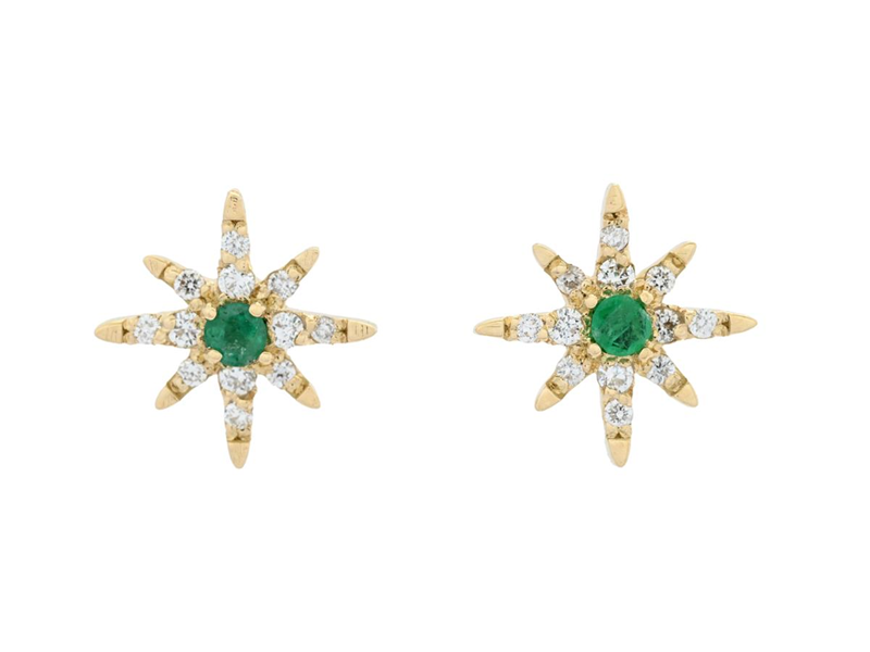 ÖRHÄNGEN, 18K guld, smaragder, 24 briljantslipade diamanter ca 0,15 ctv, ca W/VS-SI, stift, mått ca 10,0 mm, vikt 1,2 g, ena smaragden skadad.