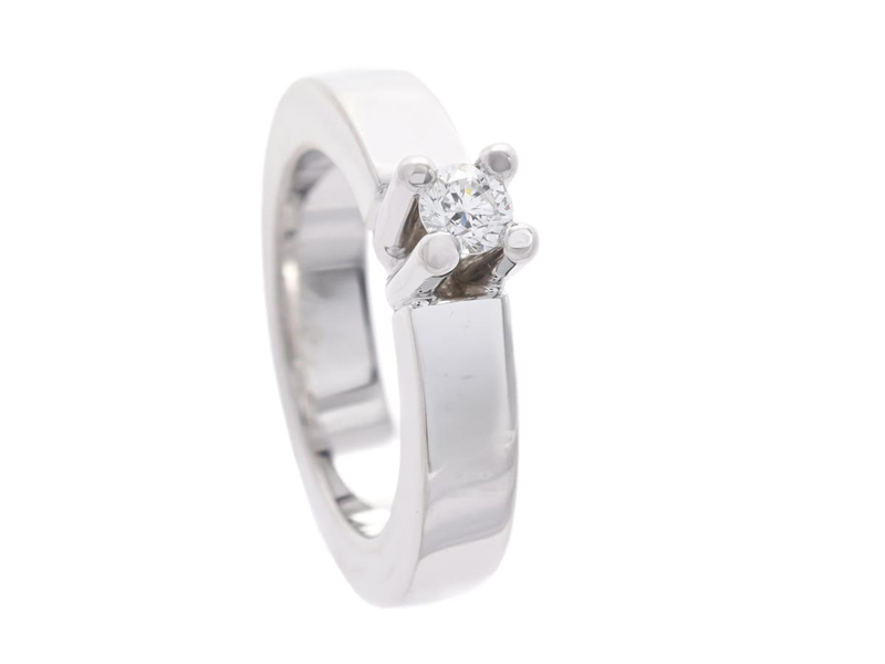 HAND, enstensring, Princess, 18K guld, briljantslipad diamant 0,20 ctv, TW/SI stl 15,5 mm, vikt 12,26 g, certifikat.