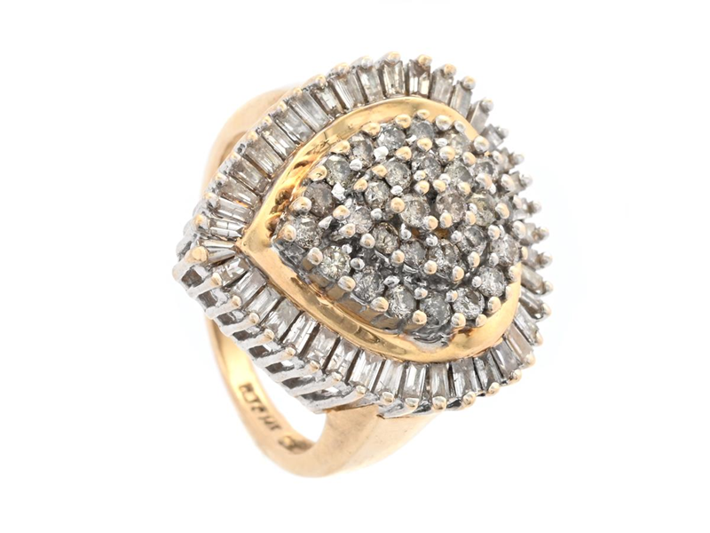 RING, 14K guld, delvis rodinerat, 28 briljant - och 41 baguetteslipade diamanter ca 1,00 ctv, stl 17,25 mm, vikt 7,0 g.