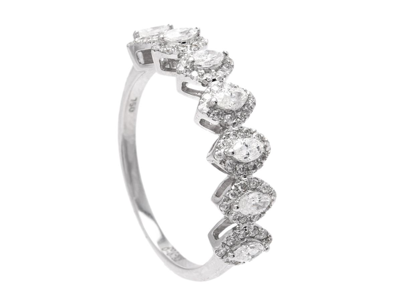 RING, 18K vitguld, 7 navette - och 70 briljantslipade diamanter 0,52 ctv, ca TW-TCr/VS-SI, stl 17,25 mm, vikt 2,5 g.