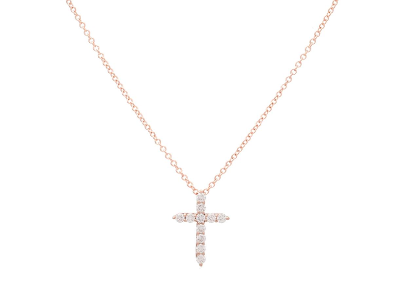 COLLIER, 18K roséguld, 11 briljantslipade diamanter ca 0,19 ctv, ca TW-TCr/VS, kors mått 13,0 x 10,0 mm, kedja 41/43 cm, vikt 2,0 g.