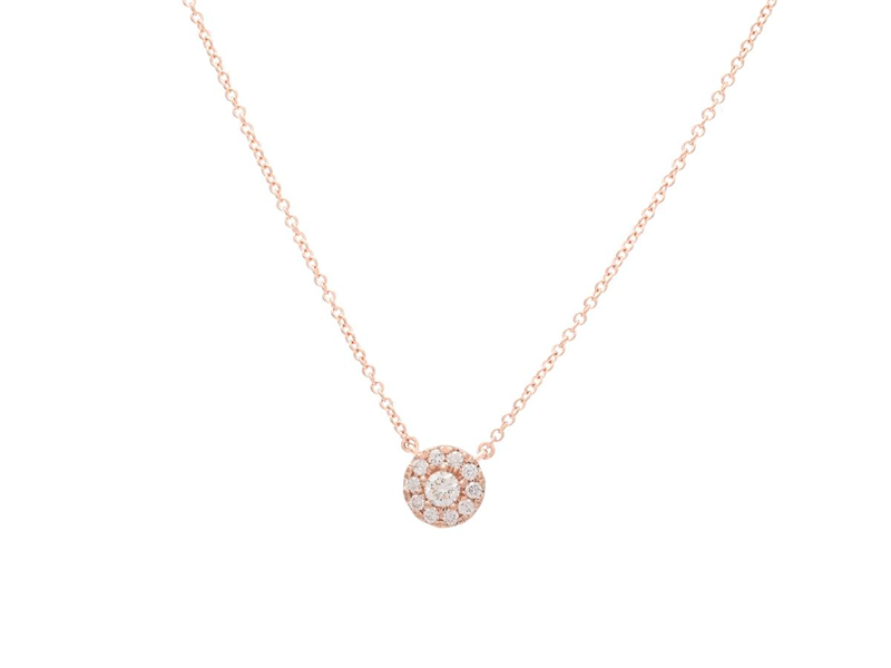 COLLIER, 18K roséguld, 11 briljantslipade diamanter ca 0,21 ctv, varav mittstenen ca 0,09 ct, ca TW-TCr/VVS-VS, diameter 6,5 mm, längd 42/45 cm, vikt 2,3 g.