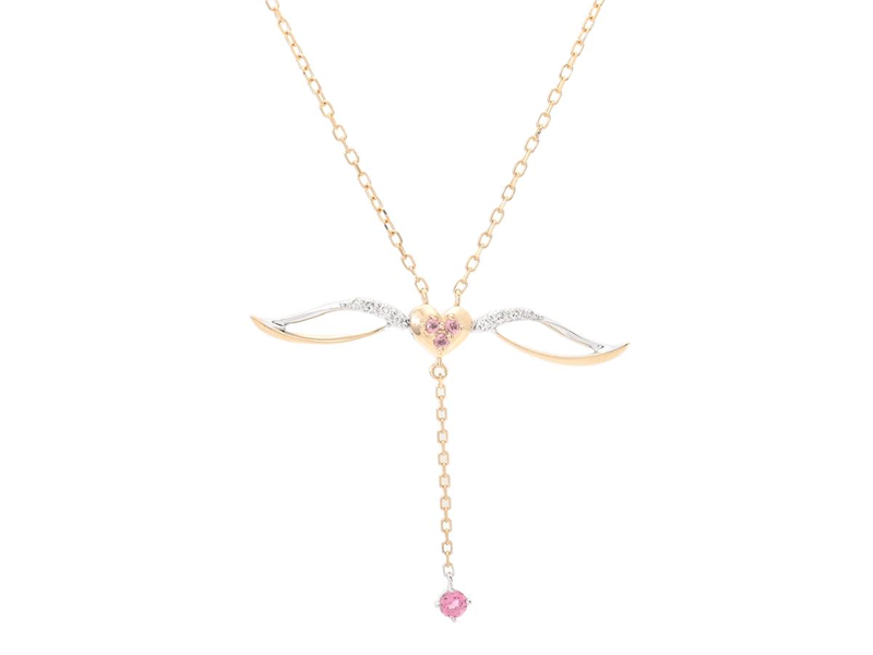 COLLIER, 18K guld/vitguld, hjärta med rörliga vingar, 8 briljantslipade diamanter ca 0,03 ctv, ca W/VS-SI, rosa turmaliner ca 0,05 ctv, bredd 27,0 mm, längd 41/43,5/46 cm, vikt 2,1 g.