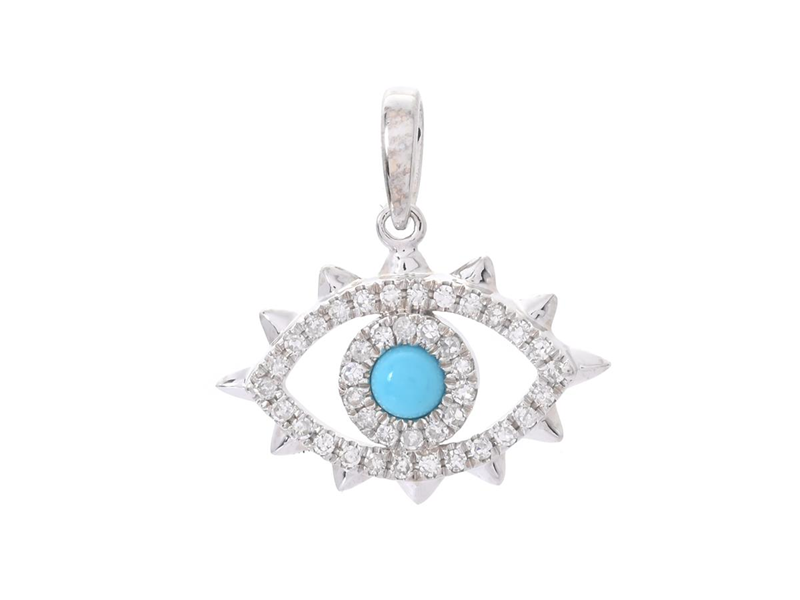 HÄNGE, 18K vitguld, öga med turkos ca 0,15 ct, åttkantslipade diamanter ca 0,12 ctv, höjd ink ögla 16,0 mm, bredd 16,0 mm, vikt 0,9 g.