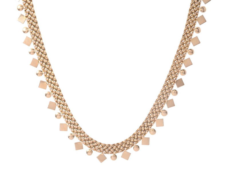 COLLIER, 18K guld, korridormatta med dekoration, längd ca 43 cm, kistlås, säkerhetsåtta, vikt ca 37,7 g.