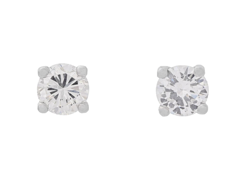 ENSTENSÖRHÄNGEN, 18K vitguld, briljanter ca 0,86 ctv, ca TW-TCr/VS, vikt 1,4 g, stift, nagg på kuletten.
