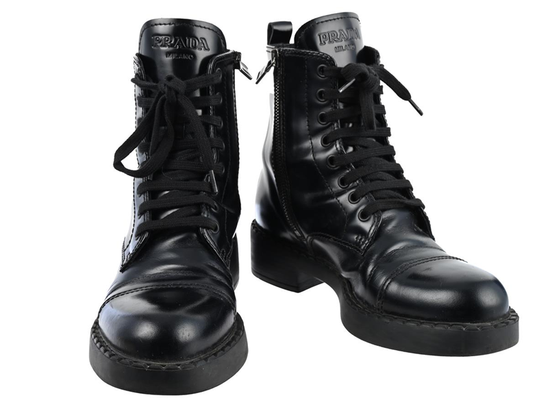 SKOR, PRADA, Boots, svart lack, svart lackskinn, stl 36½ , skopåse, kartong.