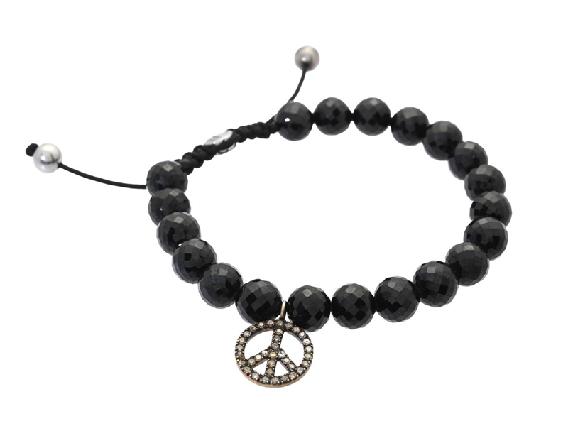 EBBA BRAHE, armband, nylon, sterlingsilver, onyx, bruna diamanter ca 0,35 ctv, justerbar längd, vikt 24,0 g, några stenar med nagg.
