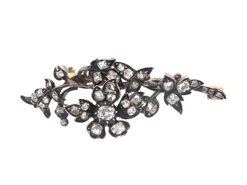 BROSCH, silver/9K guld, antikslipade diamanter, antik, höjd 42 mm, vikt 5,4 g.