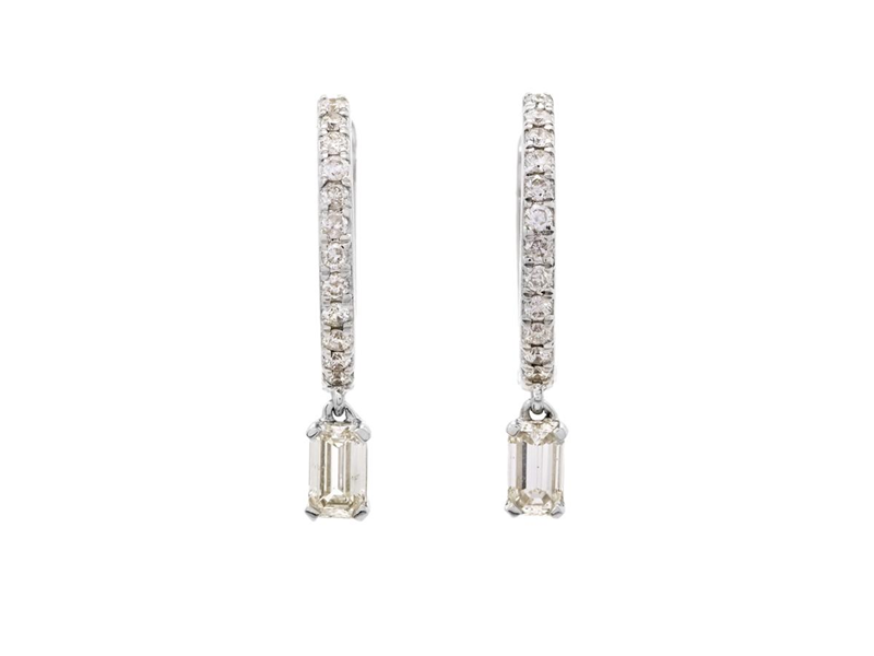 ÖRHÄNGEN, 18K vitguld, 24 briljantslipade samt 2 baguettslipade diamanter ca 0,56 ctv, ca TW-Cr/VS-P, höjd 20 mm, vikt 2,5 g.