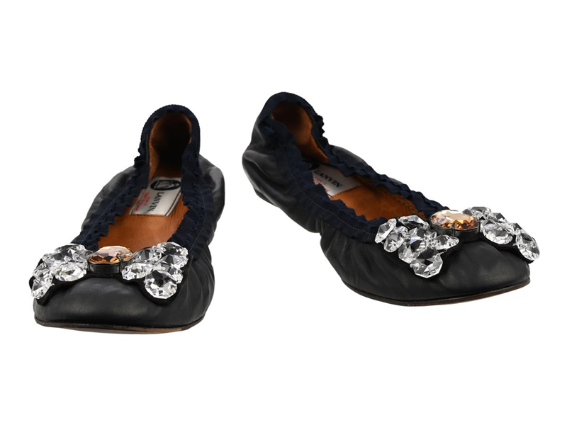 SKOR, LANVIN, Ballerina, svart läder, orange, vita stenar, stl 38.