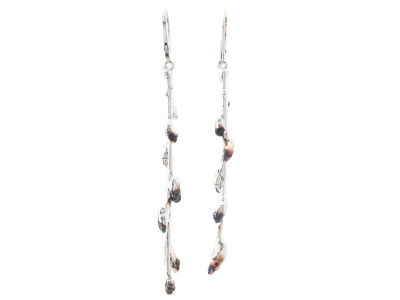 ÖRHÄNGEN, silverpläterad kvist, Bluealg design, stängbara krokar i sterlingsilver, längd 87,0 mm, vikt 4,3 g.