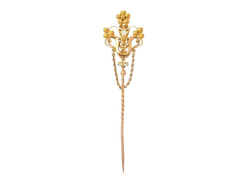 NÅL, 18K guld, filigranarbete, Gustaf Dahlgren & Co, vikt 2,1 g, något skev nål, etui.