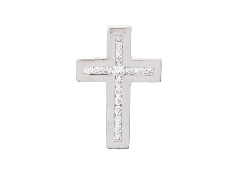 HÄNGE, kors, 18K vitguld, 17 briljantslipade diamanter 0,25 ctv, ca W/SI, höjd 19 mm, vikt 2,2 g.