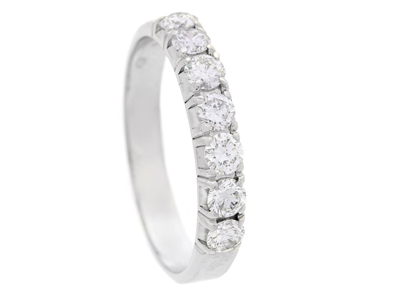 ALLIANSRING, 18K vitguld, 7 briljantslipade diamanter 0,81 ctv enligt gravyr, ca TW/VS, stl 19,25 mm, vikt 4,0 g.
