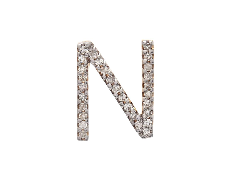 BOKSTAVSHÄNGE, bokstav N, 18K guld, åttkantslipade diamanter ca 0,11 ctv, höjd 11,0 mm, bredd 8,5 mm, vikt 0,7 g.