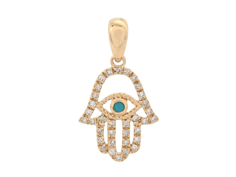 HÄNGE, 18K guld, hand, turkos ca 0,02 ct, åttkantslipade diamanter ca 0,10 ctv, längd 19,0 mm ink ögla, bredd 10,5 mm, vikt 0,7 g.