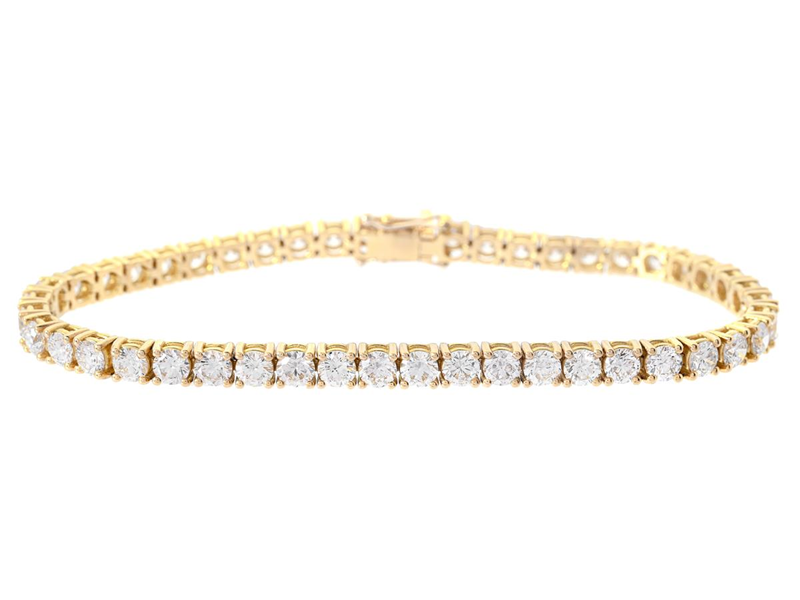 TENNISARMBAND, 18K guld, 47 briljantslipade diamanter ca 7,78 ctv ca TCr-Cr/VS-SI, längd 18 cm, vikt 14,4 g, enstaka diamanter har nagg på kuletten.
