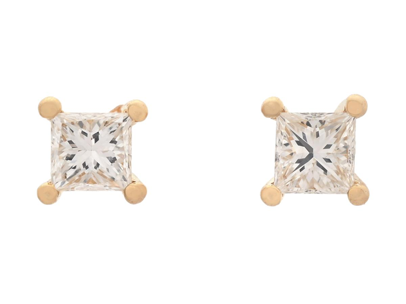 ENSTENSÖRHÄNGEN, 18K guld, prinsesslipade diamanter 0,42 ctv, ca TW/VS, stift, vikt 1,1 g.