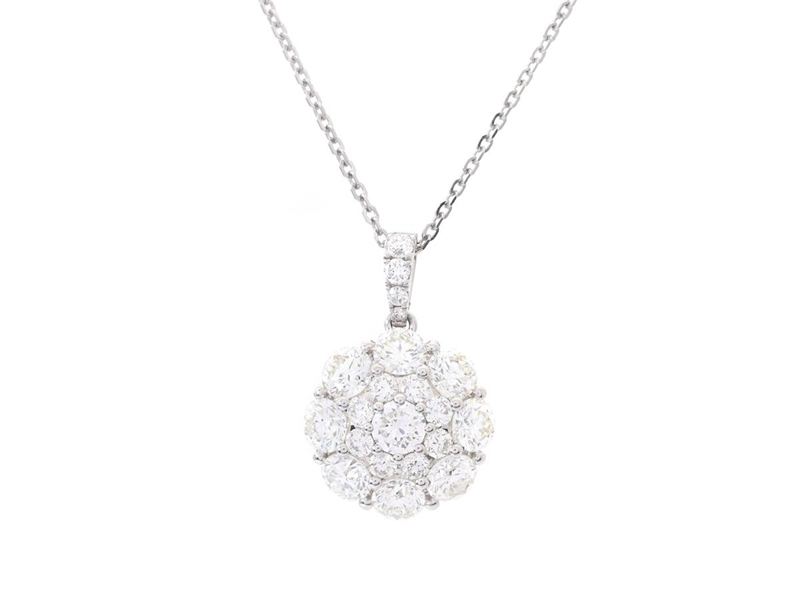 HÄNGE MED KEDJA, 18K vitguld, briljantslipade diamanter ca 1,42 ctv, ca TCr-Cr/VVS-VS, längd 40-43 cm, vikt 2,2 g.