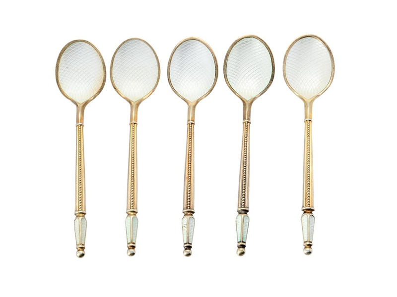 ANTON MICHELSEN, kaffeskedar, sterlingsilver, emalj, Danmark 1900-talets mitt, längd 8,5 cm, vikt 35,3 g.