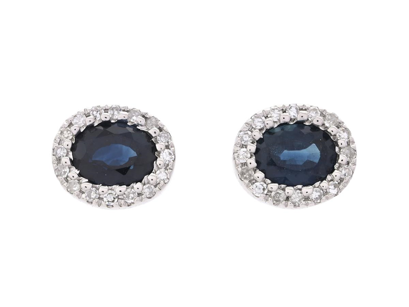 ÖRHÄNGEN, 18K vitguld, ovala fasettslipade blå safirer ca 0,54 ctv, åttkantslipade diamanter ca 0,06 ctv, stift, mått 6,0 x 5,0 mm, vikt 0,9 g.