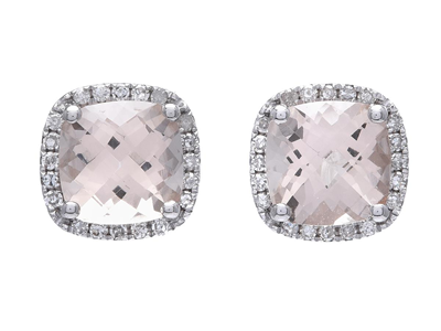 ÖRHÄNGEN, 18K roséguld/vitguld, oval- och droppslipade morganiter ca 1,30 ctv, 6 briljantslipade diamanter ca 0,25 ctv, ca TW/VS, stift, mått ca 11,0 x 10,0 mm, vikt 3,3 g.